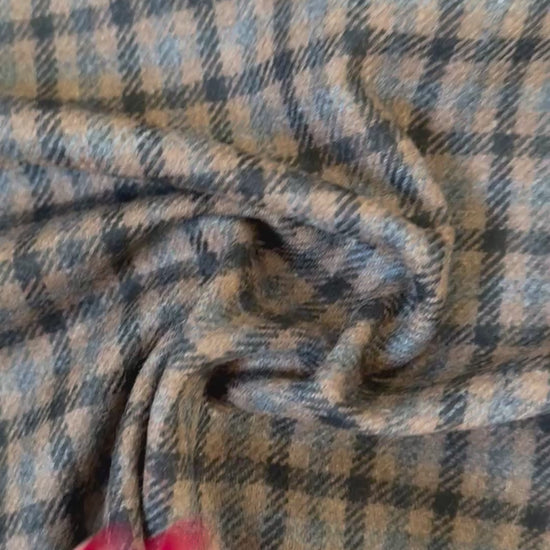 Tissu - Lainage carreau brun - marron - bleu (par 10cm)